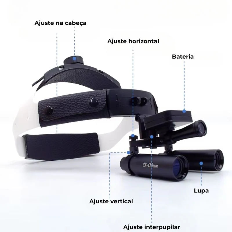 Lupa de Cabeça Cirúrgica com Fotóforo LED Sem Fio Focus: Visão Precisa, Iluminação Potente e Total Liberdade para o seu Trabalho