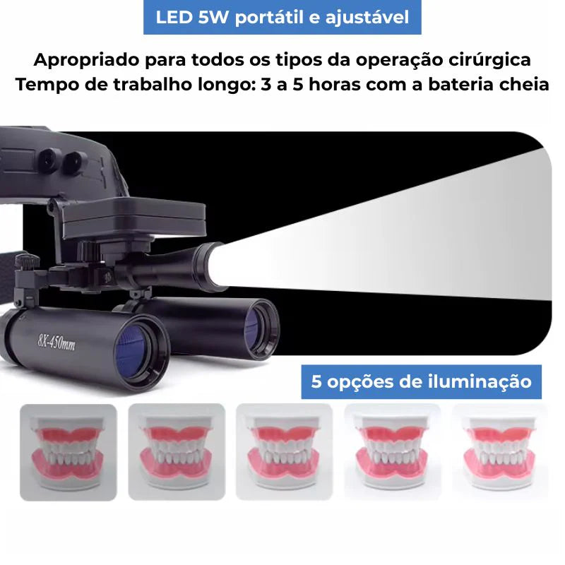 Desenvolvida para profissionais que exigem máxima precisão e mobilidade. Combinando ampliação nítida com iluminação direta e uniforme, ela garante resultados mais seguros, rápidos e eficientes em procedimentos clínicos, odontológicos e estéticos.