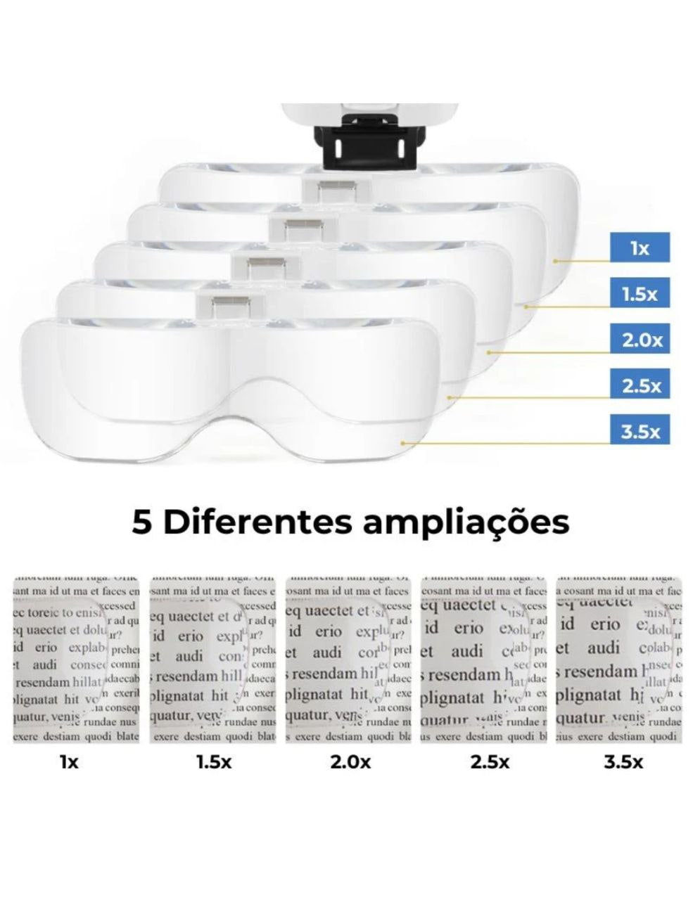 Projetada para ser usada confortavelmente sobre óculos de grau, a permite que você desfrute de ampliação e iluminação sem precisar sacrificar seu conforto visual habitual. Isso significa menos interrupções e mais eficiência em seu trabalho.